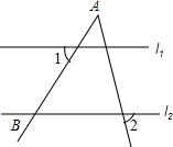 10.如图,已知l1∥l2,∠A=40°,∠1=60°,则∠2的度数为80°.