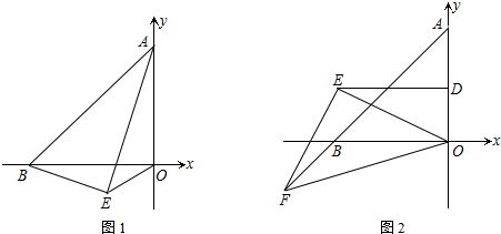 (3)如图2,若D是AO的中点,DE∥BO,F在AB的延长线上,∠EOF=45°,连接EF,试探究OE和EF的数量和位置关系.