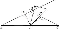 ·Ö±ð¹ýµãP×÷PM¡ÍBE£¬PN¡ÍEF£¬´¹×ã·Ö±ðΪM¡¢N£¬ÔòPM=PN£¬Èçͼ£º![]()