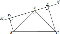 如图,在△ABC中,∠BAC=90°,∠ABC=45°,若MN是经过点A的直线,BD⊥MN于D,CE⊥MN于E,