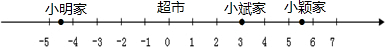 (1)以超市为原点,以向东的方向为正方向,用1个单位长度表示1千米,在数轴上表示出小明家、小彬家、小颖家的位置;