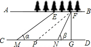 分析 过点F作FG∥EM交CD于G.则MP=EF=20米,根据∠FPN=∠α=36°,设河的宽FG=x米在Rt△FPG中,根据正切函数可求得PG=2x,在Rt△FNG中,同理求得NG≈0.5x,根据PG-NG=30即可得出答案.