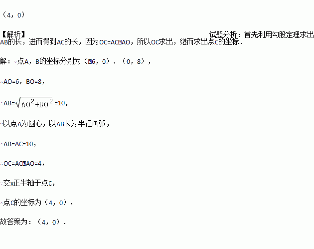 如图,在平面直角坐标系中,点A,B的坐标分别为(﹣6,0)、(0,8).以点A为圆心,以AB长为半径画弧,交x正半轴于点C,则点C的坐标为 .