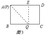 点E离点A最远,此时四边形ABQE为正方形,AE=AB=3cm,
