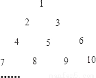将全体正整数排成一个三角形数阵,根据上述排列规律,数阵中第10行从左至右的第5个数是 .
