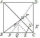 解:作EF∥AC且EF=$\sqrt{2}$,连结DF交AC于M,在AC上截取MN=$\sqrt{2}$,延长DF交BC于P,作FQ⊥BC于Q,作出点E关于AC的对称点E′,则CE′=CE=1,将MN平移至E′F′处,则四边形MNE′F′为平行四边形,