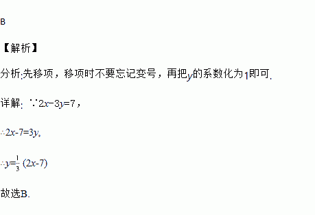 方程2x-3y=7,用含x的代数式表示y为( )