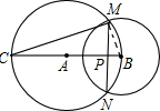 如图,BC是⊙A的直径,以B为圆心的圆与⊙A交于M,N两点,MN交BC于点P.