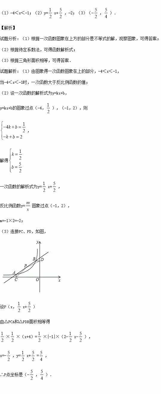(1)根据函数图像直接回答问题:在第二象限内,当x取何值时,一次函数的值大于反比例函数的值?