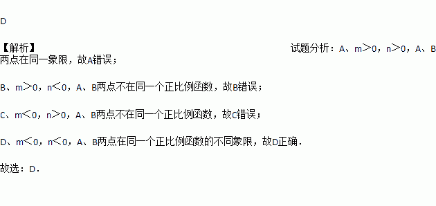 如果一个正比例函数的图象经过不同象限的两点A(2,m),B(n,3),那么一定有( )