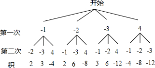 (2013•南安市质检)在一个不透明的布袋里装有4个小球,球面上分别标有数字-1,-2,-3,4,它们除数字外,没有任何区别,现将它们搅匀.