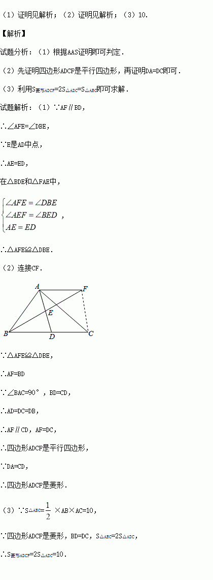 (3)若AB=4,AC=5,求菱形ADCF的面积。