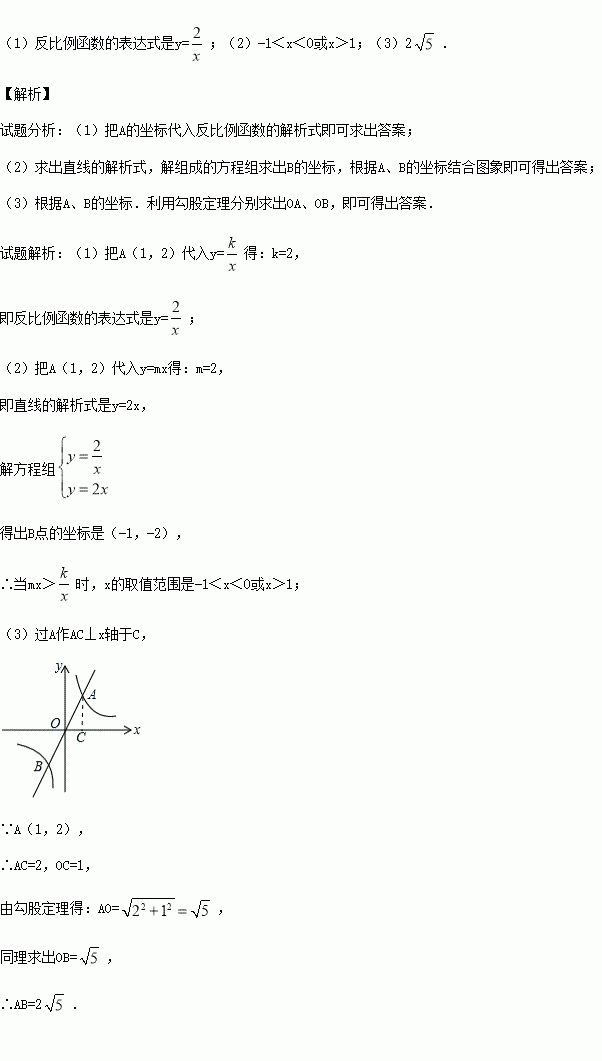 相交于A、B两点,A点的坐标为(1,2)