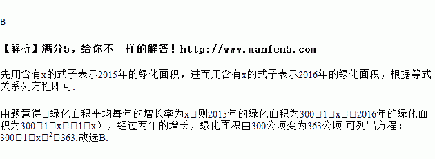 公顷,设绿化面积平均每年的增长率为![]()