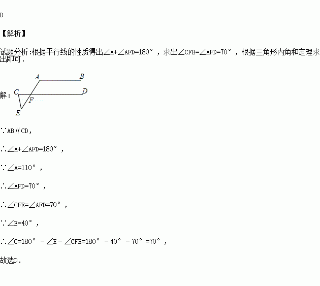 已知:如图AB∥CD,CE平分∠ACD,∠A=110°,则∠ECD等于 度.