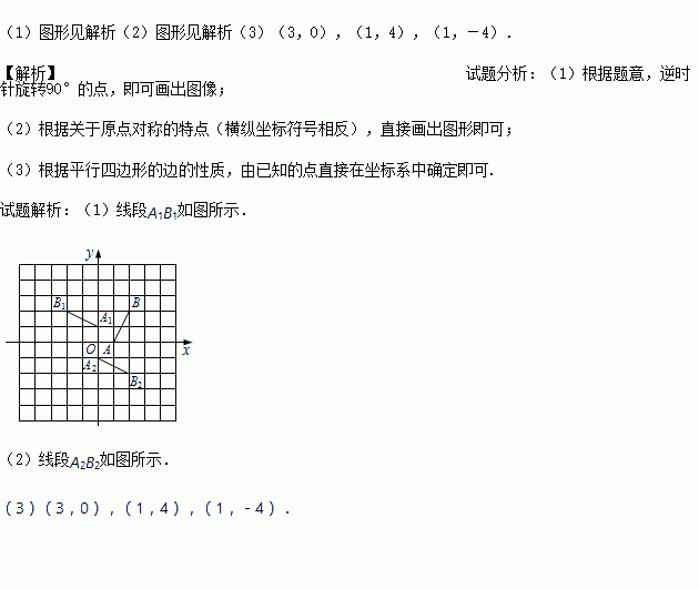 (2)在(1)的条件下,线段A2B2与线段A1B1关于原点O成中心对称,请在图中画出线段A2B2;