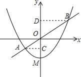 解答 解:(1)∵抛物线y=x2+bx+c的顶点M的坐标为(0,-1),