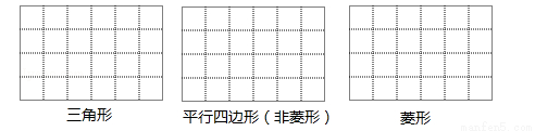 (1)在下面的方格中各画出一个面积为6的格点多边形,依次为三角形、平行四边形(非菱形)、菱形;