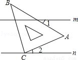 如图,直线m∥n,将含有45°角的三角板ABC的直角顶点C放在直线n上,则∠1+∠2等于( )