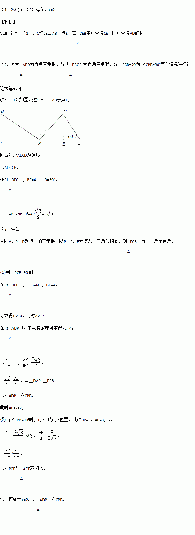 (2)点P在运动过程中,是否存在以A、P、D为顶点的三角形与以P、C、B为顶点的三角形相似?若存在,求出x的值;若不存在,请说明理由.