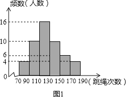 (2)该校九年级女生“一分钟跳绳”成绩为优秀的人数是:$\frac{50-4-10-16}{50}$×260=104(人);