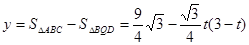 µÄÃæ»ý¿É±íʾ³ö¡÷BQDµÄÃæ»ý£¬´Ó¶ø¿ÉµÃyÓëtµÄº¯Êý¹ØÏµÊ½£¬¼´¿ÉµÃµ½¹ØÓÚtµÄ·½³Ì£¬ÓÉ·½³ÌµÄ¸ùµÄÅбðʽ¡÷