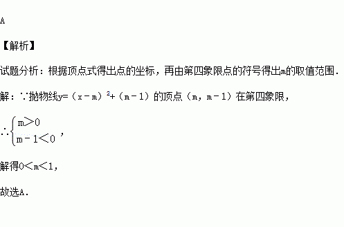 (2015秋•宜城市期末)若抛物线y=(x﹣m)2+(m﹣1)的顶点在第四象限,则m的取值范围( )