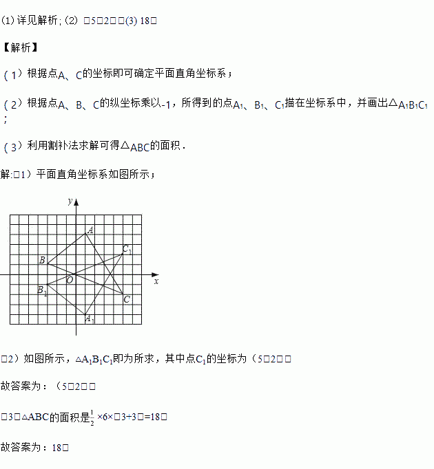 (2)请你将A、B、C的横坐标不变,纵坐标乘以﹣1所得到的点A1、B1、C1描在坐标系中,并画出△A1B1C1,其中点C1的坐标为 .
