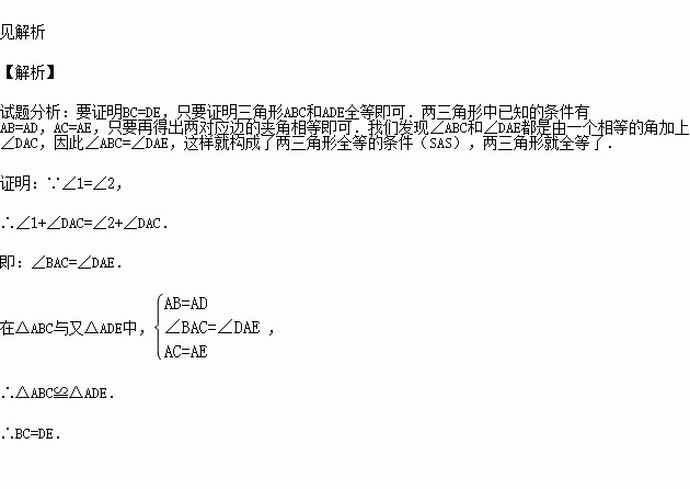(2013•娄底)如图,AB=AC,要使△ABE≌△ACD,应添加的条件是 (添加一个条件即可).
