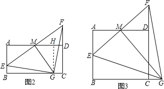 (2)过点G作GH⊥AD于H,通过条件可以证明△AEM≌△HMG,得出ME=MG,进而得出∠EGM=45°,再由(1)的结论可以得出∠EGF=90°,从而得出结论.