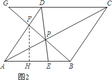 (2)①首先证明△DFP≌△BEP,进而得出$\frac{DG}{AB}=\frac{1}{2}$,$\frac{BE}{AB}=\frac{1}{3}$,进而得出$\frac{DP}{PE}=\frac{DG}{EB}$即$\frac{3}{2}=\frac{DP}{PF}$,即可得出答案;