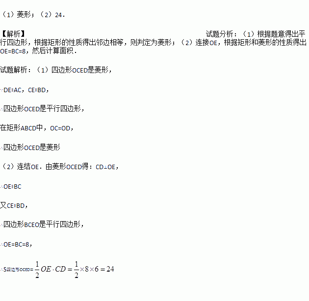(2)若AB=6,BC=8,求四边形OCED的面积.