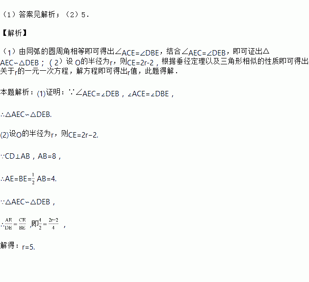 (2)若CD⊥AB,AB=8,DE=2,求⊙O的半径.