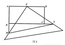 在矩形ABCD中,AD=2AB=4,E是AD的中点,一块足够大的三角板的直角顶点与点E重合,将三角板绕点E旋转,三角板的两直角边分别交AB,BC(或它们的延长线)于点M,N.