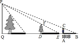 ∴$\frac{DF}{PQ}=\frac{DE}{QE}$,即$\frac{2}{PQ}=\frac{4}{QD+4}$ ①,
