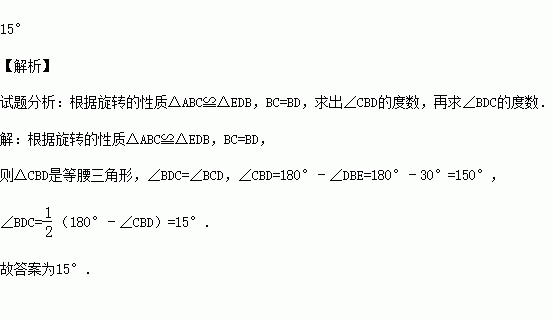 (2009•昌平区一模)如图所示,把一个直角三角尺ACB绕着30°角的顶点B顺时针旋转,使得点A落在CB的延长线上的点E处,则∠BDC的度数为 度.