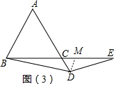 (2)如图2中,作DM∥AB交CB的延长线于M.首先证明AD=BM.再证明△DBM≌△DEC,推出BM=CE,即可证明;如图3中,作DM∥AB交BC的延长线于M.证明方法类似;