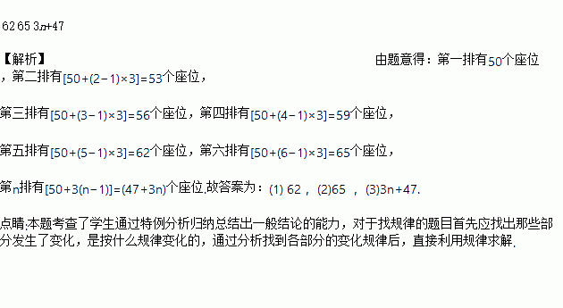 上述问题中,第五排、第六排分别有____个、____个座位;第n排有____个座位.