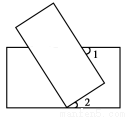 (5分)将两张矩形纸片如图所示摆放,使其中一张矩形纸片一个顶点恰好的落在另一张矩形纸片的一条边上,则∠1+∠2= 度.