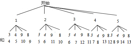 由树状图可知:两个转盘指针所对应的数字之和为5的倍数的概率是