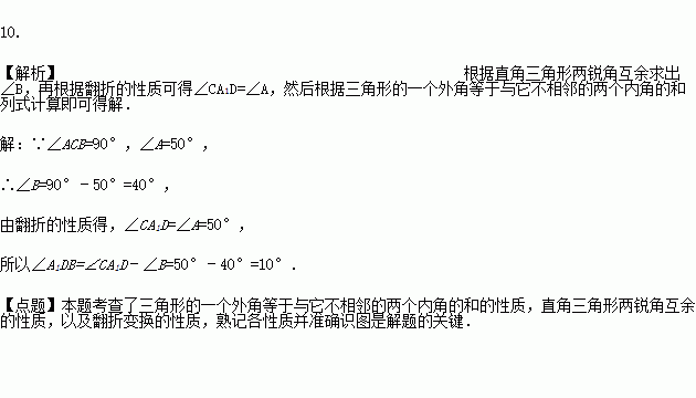ABCD中,AE⊥BC于点E,以点B为中心,取旋转角等于∠ABC,把△BAE顺时针旋转,得到△BA′E′,连接DA′.若∠ADC=60°,∠ADA′=50°,则∠DA′E′的大小为( )