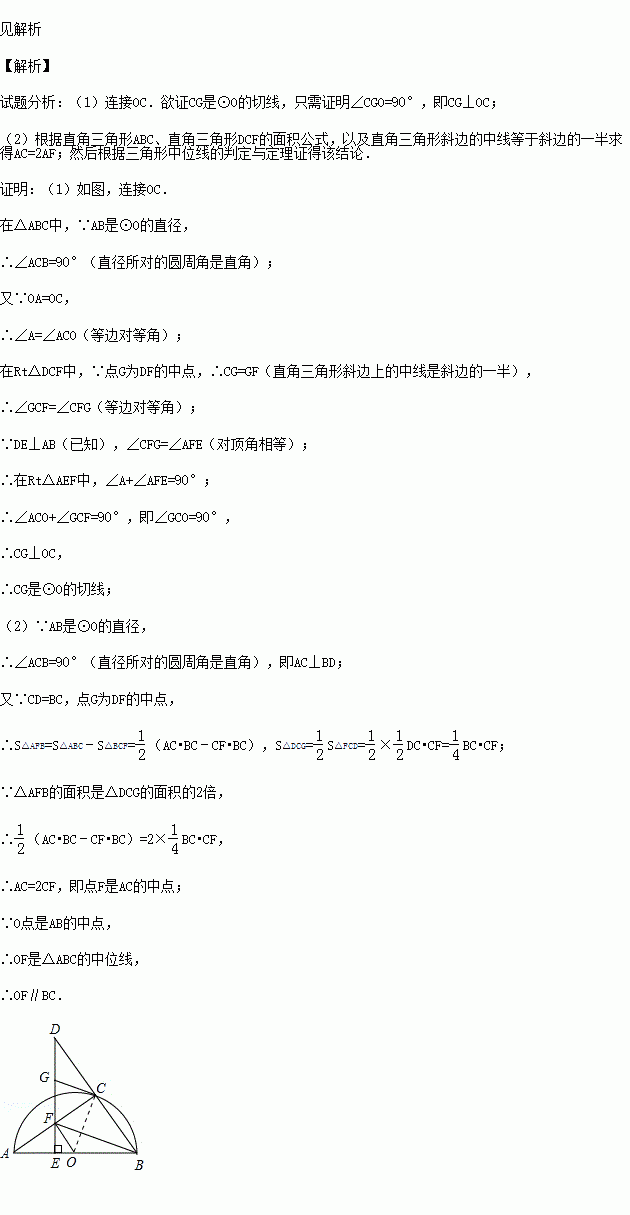 (2)若△AFB的面积是△DCG的面积的2倍,求证:OF∥BC.