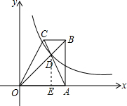 分析 由△BCD的面积为3,△OCD的面积为6,得到$\frac{BD}{OD}$=$\frac{1}{2}$,根据△BCD∽△OAD,利用相似三角形的面积的比等于相似比的平方即可求得△OAD的面积,作DE⊥OA于点E,则DE∥AB,据此即可求得OE与OA的比值,根据三角形的面积公式即可求得△ODE的面积,根据反比例函数比例系数k的几何意义即可求解.