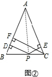 ∴S△ABP=$\frac{1}{2}$AB•PD,S△ACP=$\frac{1}{2}$AC•PE,S△ABC=$\frac{1}{2}$AB•CF,