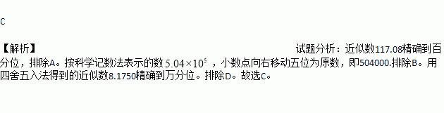 A. 近似数117.08精确到十分位