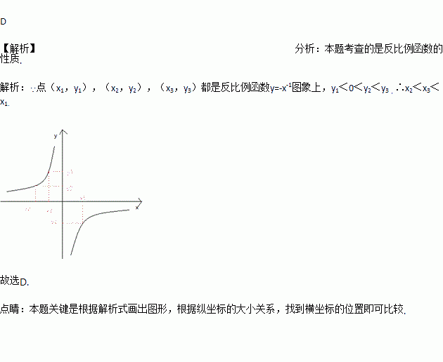 若点(x1,y1),(x2,y2),(x3,y3)都是反比例函数y=-x-1图象上的点,并且y1<0<y2<y3,则下列各式中正确的是( )
