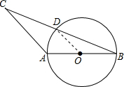 解答:解:点D在⊙O上.