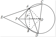 分析:(1)∠P=2∠E;连接OA、OB,先证明∠E=90°-∠BDA,再证明∠AOB=2∠BDA,∠P=180°-∠AOB,即可证出∠P=2∠E.
