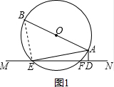 分析 (1)连接BE,根据AB是⊙O的直径,AD⊥MN,得到∠BEA=90°,∠ADF=90°,由四边形ABEF是圆内接四边形,得到∠AFD=∠B,等量代换得到∠BAE=∠DAF;