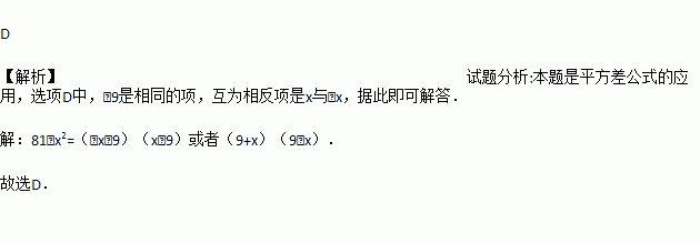 C. (﹣x+9)(﹣x﹣9) D. (﹣x﹣9)(x﹣9)